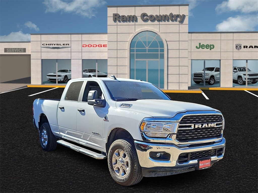 This 2024 Ram 2500 Big Horn in Bright White Clearcoat comes with the following features: Cummins 6.7L I6 Turbodiesel 6-Speed Automatic 4WD Level 1 Equipment Group (2 Way Rear Headrest Seat, 2nd Row In Floor Storage Bins, 4 Way Front Headrests, 40/20/40 Split Bench Seat, 4G LTE Wi-Fi Hot Spot, 8.4" Touchscreen Display, Apple CarPlay, Auto Power-Folding Mirrors, Big Horn IP Badge, Black Exterior Mirrors, Bluetooth Handsfree Phone & Audio, Center Hub, Connectivity - US/Canada, Dual Glove Boxes, Exterior Mirrors Courtesy Lamps, Exterior Mirrors w/Heating Element, Exterior Mirrors w/Supplemental Signals, Foam Bottle Insert (Door Trim Panel), Footwell Courtesy Lamp, For Details, Visit DriveUconnect.com, For More Info, Call 800-643-2112, Forward & Reverse Utility Lights, Front Armrest w/Cupholders, Front Center Seat Cushion Storage, Front Fog Lamps, Front Seat Back Map Pockets, Global Telematics Box Module (TBM), Glove Box Lamp, Google Android Auto, GPS Antenna Input, Integrated Center Stack Radio, Integrated Voice Command w/Bluetooth, Leather Wrapped Steering Wheel, Locking Lower Glove Box, Manual Adjust 4-Way Front Passenger Seat, Mirror Running Lights, Power 2-Way Driver Lumbar Adjust, Power Adjust 8-Way Driver Seat, Power Adjust Mirrors, Power Adjustable Convex Aux Mirrors, Power Heated Fold Telescope Mirrors, Power Telescoping Mirrors, Rear 60/40 Folding Seat, Rear Dome w/On/Off Switch Lamp, Remote USB Port - Charge Only, Selectable Tire Fill Alert, SiriusXM Radio Service, SiriusXM Satellite Radio, Steering Wheel Mounted Audio Controls, Storage Tray, and Wheels: 18" x 8.0" Polished Aluminum), Quick Order Package 2HZ Big Horn, 3.73 Axle Ratio, 4-Wheel Disc Brakes, 6 Speakers, ABS brakes, Active Noise Control System, Air Conditioning, Brake assist, Bumpers: chrome, Center Stack Storage Drawer, Chrome Flat Cab-Length Side Steps, Cloth 40/20/40 Bench Seat, Compass, Delay-off headlights, Driver door bin, Dual front impact airbags, Dual front side impact airbags, Electronic Stability Control, Electronically Controlled Throttle, Emergency communication system: SiriusXM Guardian, Front anti-roll bar, Front Center Armrest w/Storage, Front License Plate Bracket, Front reading lights, Fully automatic headlights, Heated door mirrors, Illuminated entry, Low tire pressure warning, Manual Adjust 4-Way Driver Seat, Manufacturer's Statement of Origin, Occupant sensing airbag, Outside temperature display, Overhead airbag, Overhead console, Panic alarm, ParkView Rear Back-Up Camera, Passenger door bin, Passenger vanity mirror, Power door mirrors, Power steering, Power windows, Premium Cloth 40/20/40 Bench Seat (DISC), Radio data system, Radio: Uconnect 3 w/5" Display, Radio: Uconnect 5 W w/8.4" Display, Rear anti-roll bar, Rear Folding Seat, Rear seat center armrest, Rear step bumper, Remote keyless entry, Speed control, Tachometer, Tilt steering wheel, Tip Start, Tow Hooks, Traction control, Trip computer, Turn signal indicator mirrors, Variably intermittent wipers, Voltmeter, and Wheels: 18" x 8.0" Steel Chrome ClaD.